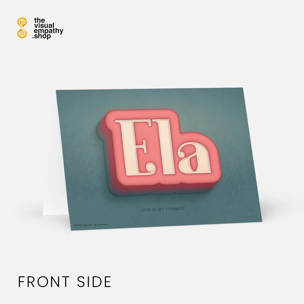 Surprise Ela with a hand-lettered, uniquely designed card illustrating the beautiful meaning behind her name. Add your own heartfelt message inside to remind her just how much she means to you.