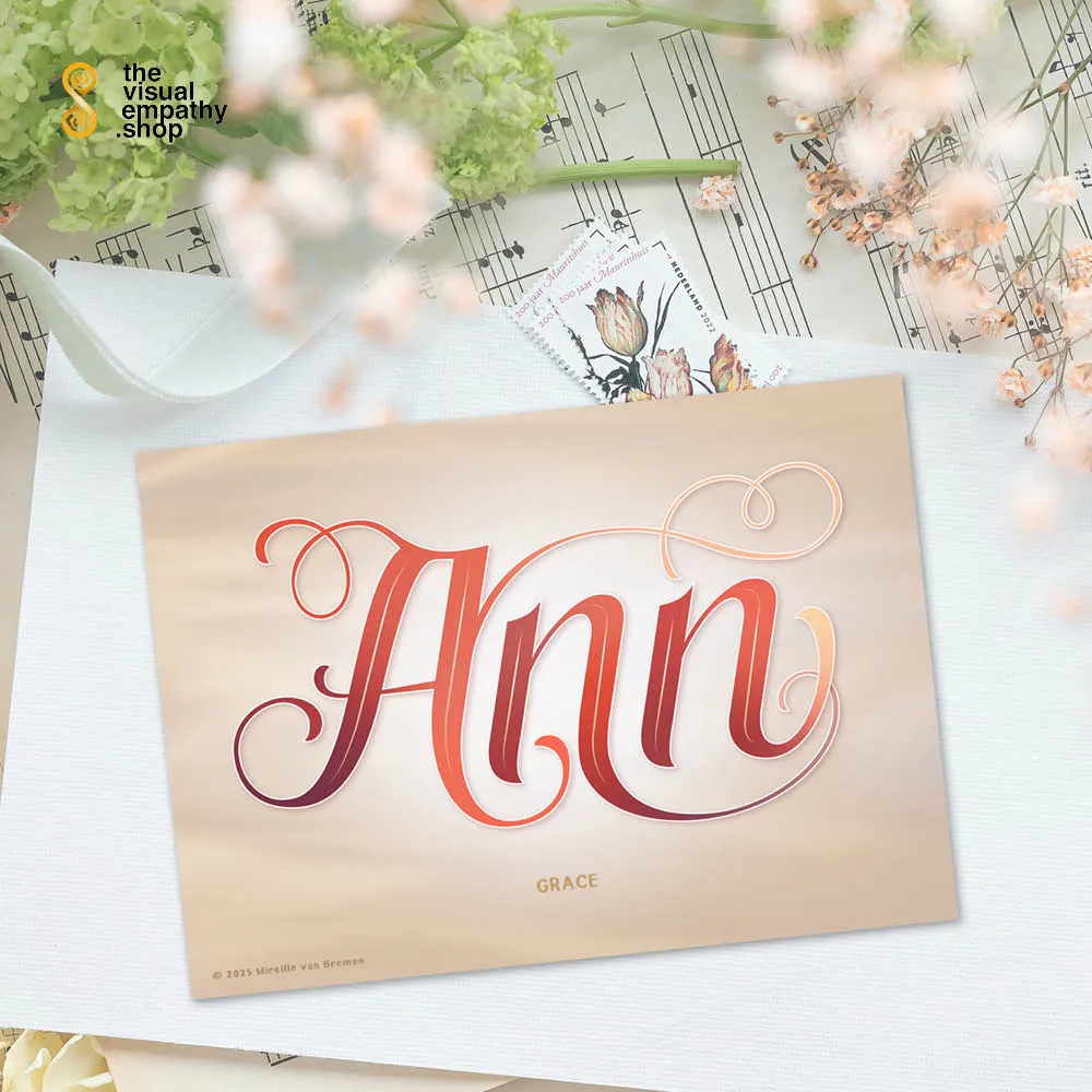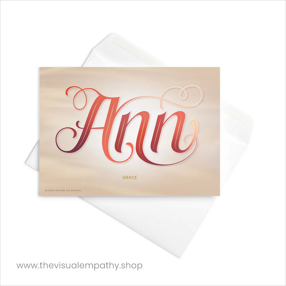 Surprise Ann with a hand-lettered, uniquely designed card illustrating the beautiful meaning behind her name. Add your own heartfelt message inside to remind her just how much she means to you.