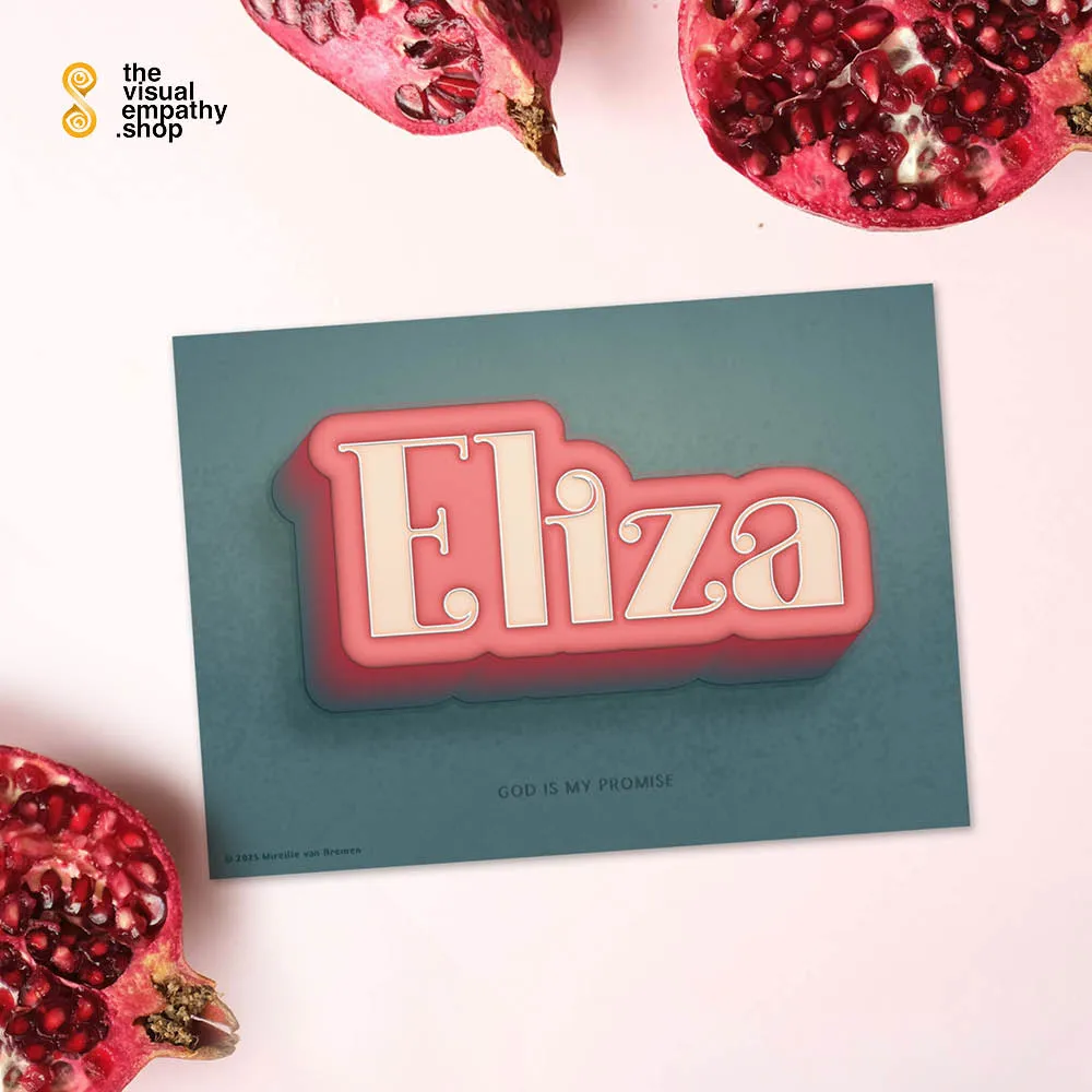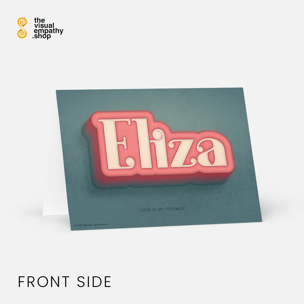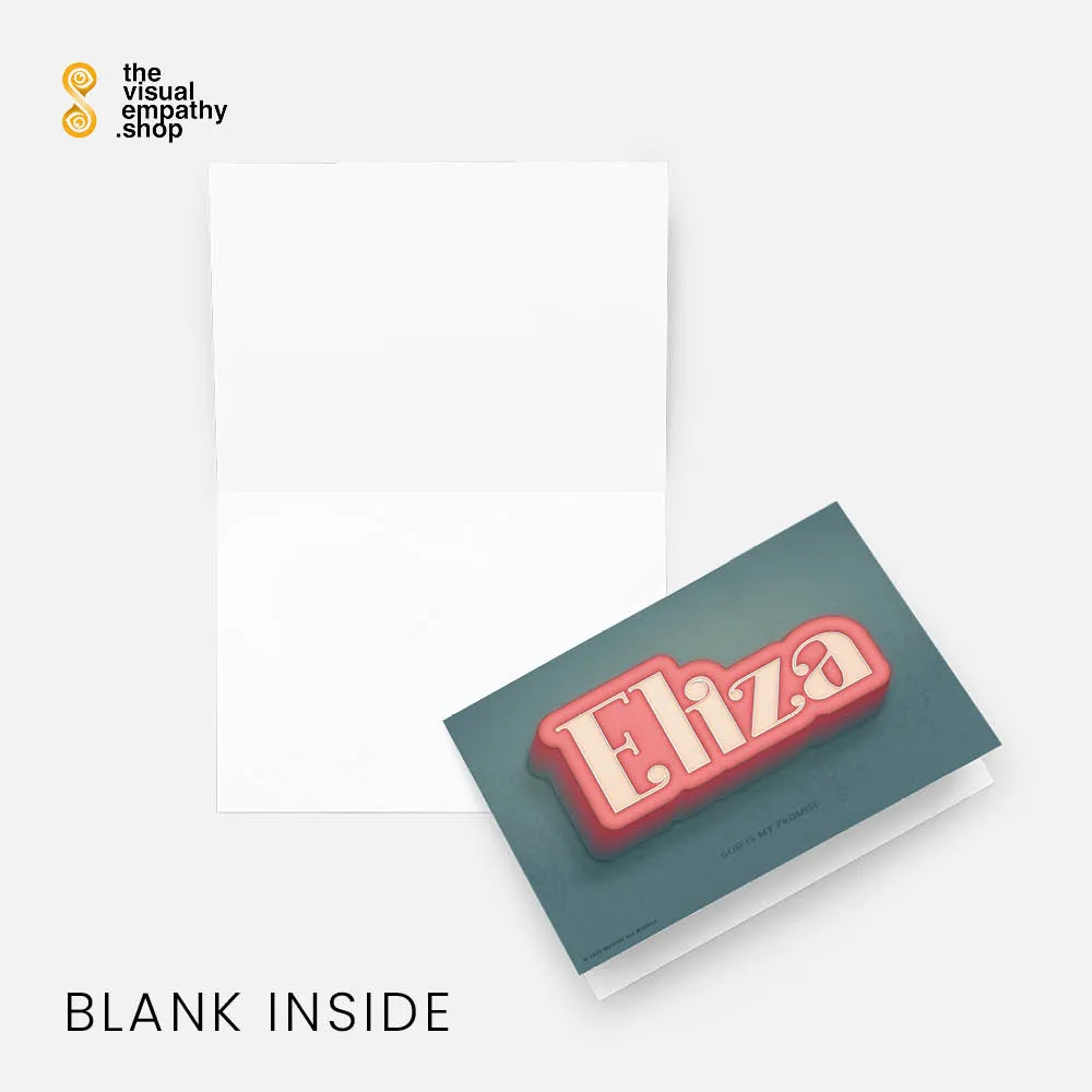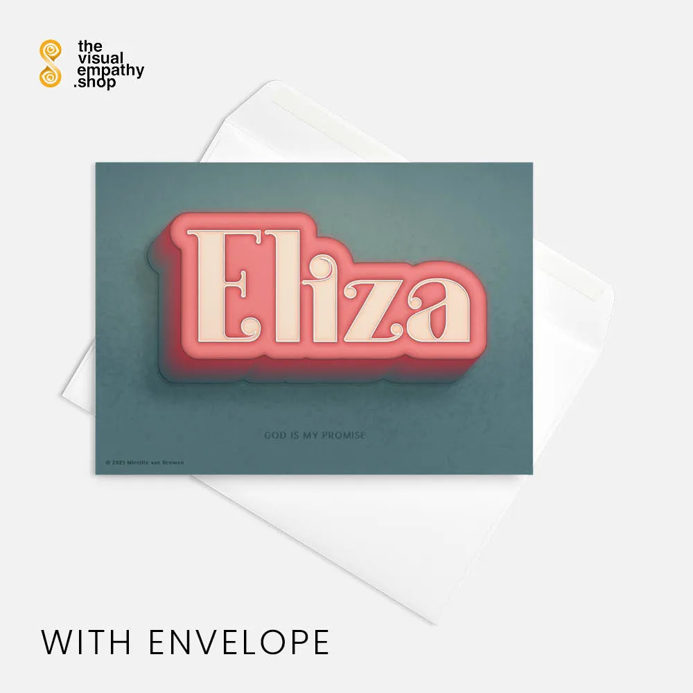 Surprise Eliza with a hand-lettered, uniquely designed card illustrating the beautiful meaning behind her name. Add your own heartfelt message inside to remind her just how much she means to you.