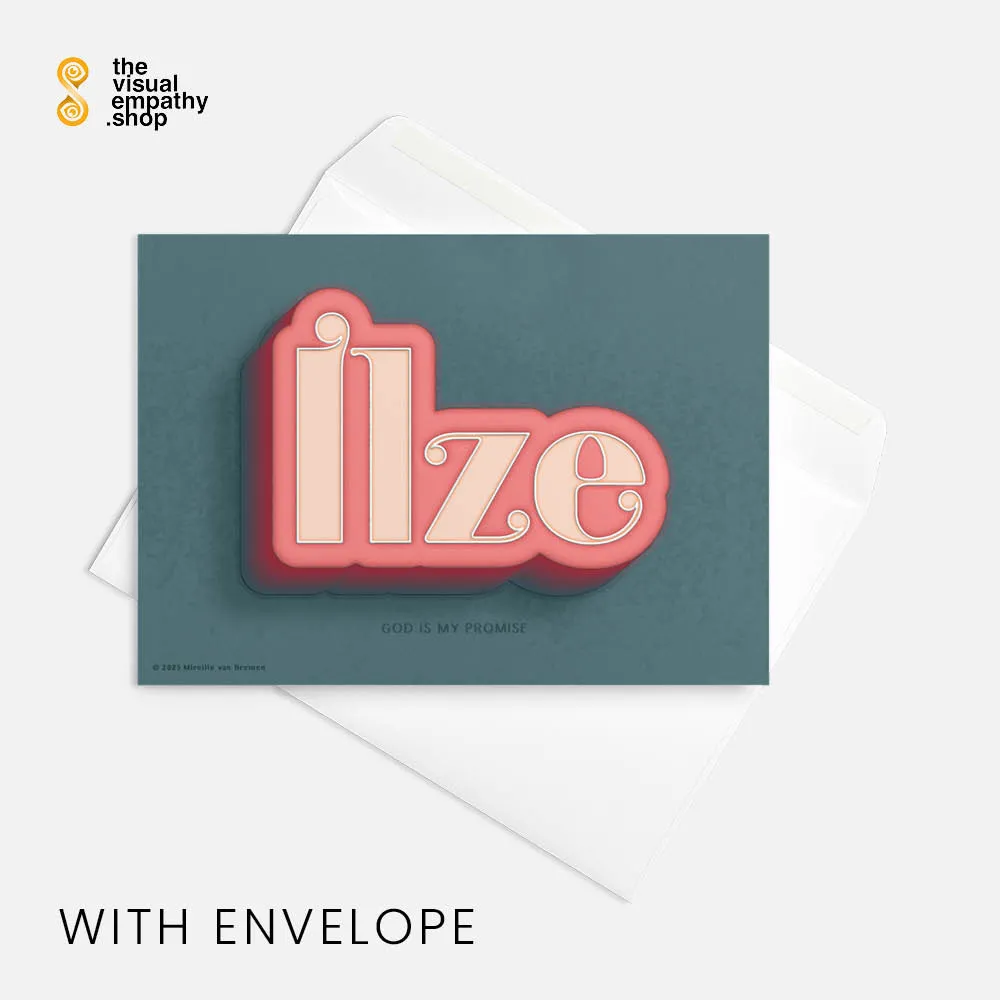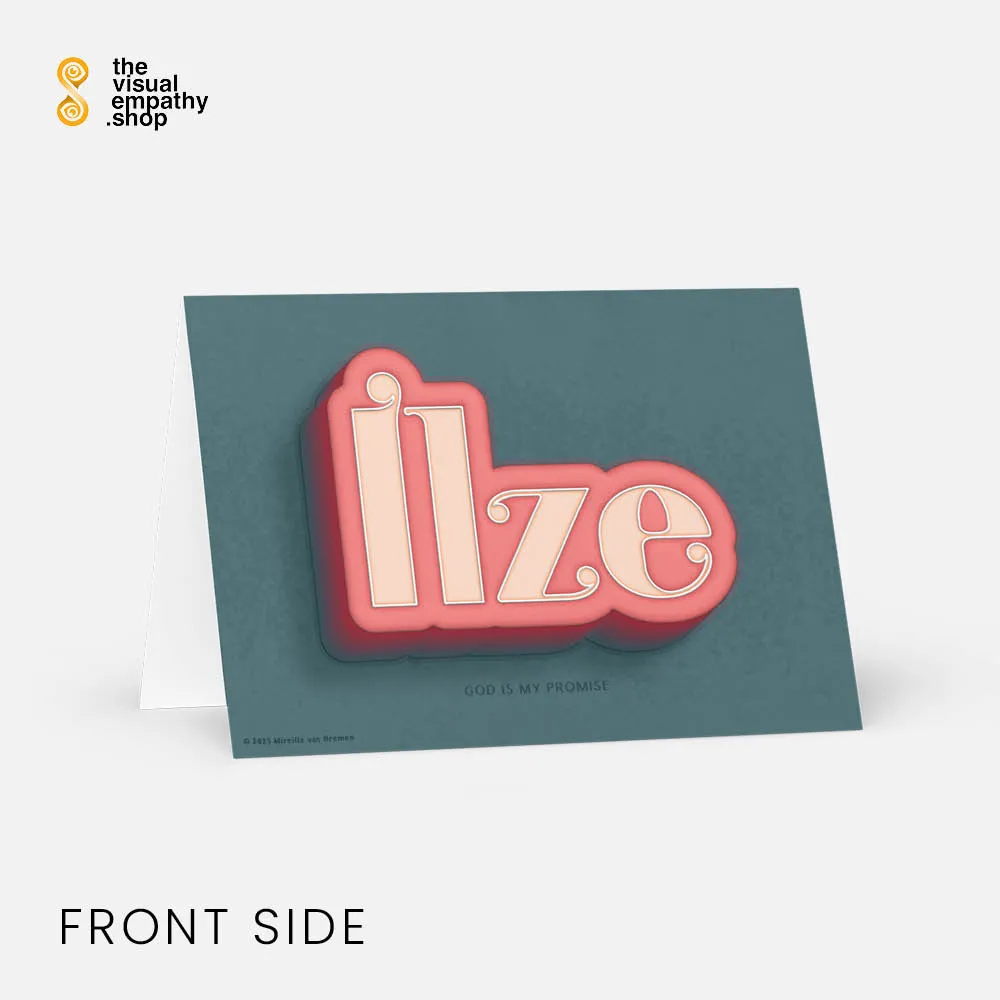 Surprise Ilze with a hand-lettered, uniquely designed card illustrating the beautiful meaning behind her name. Add your own heartfelt message inside to remind her just how much she means to you.