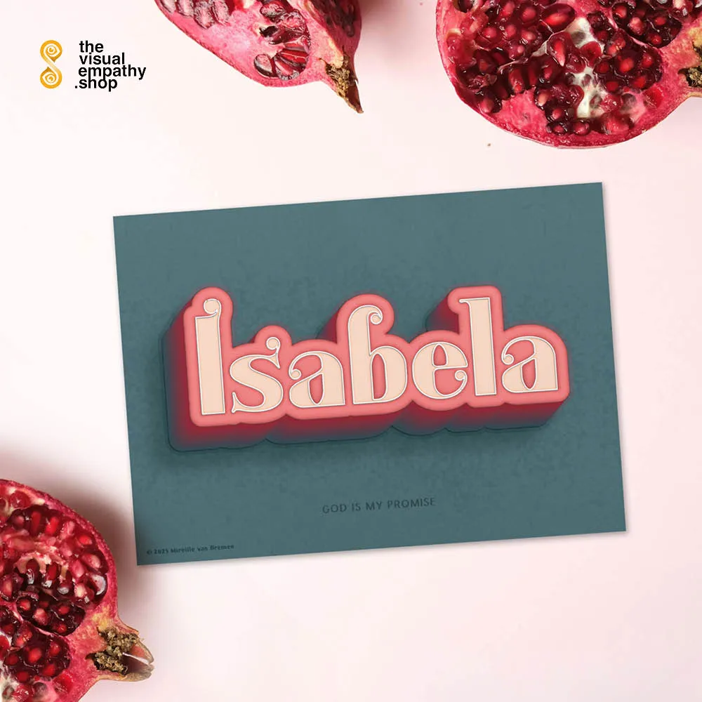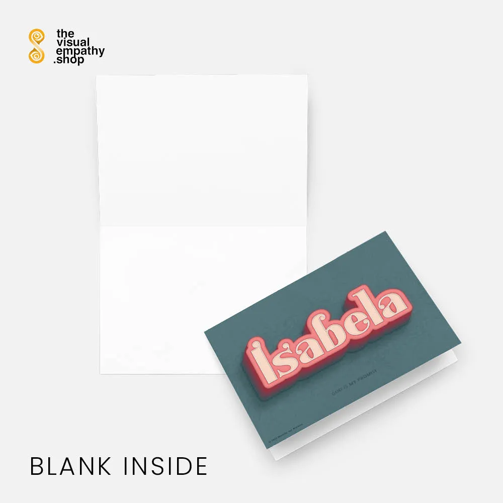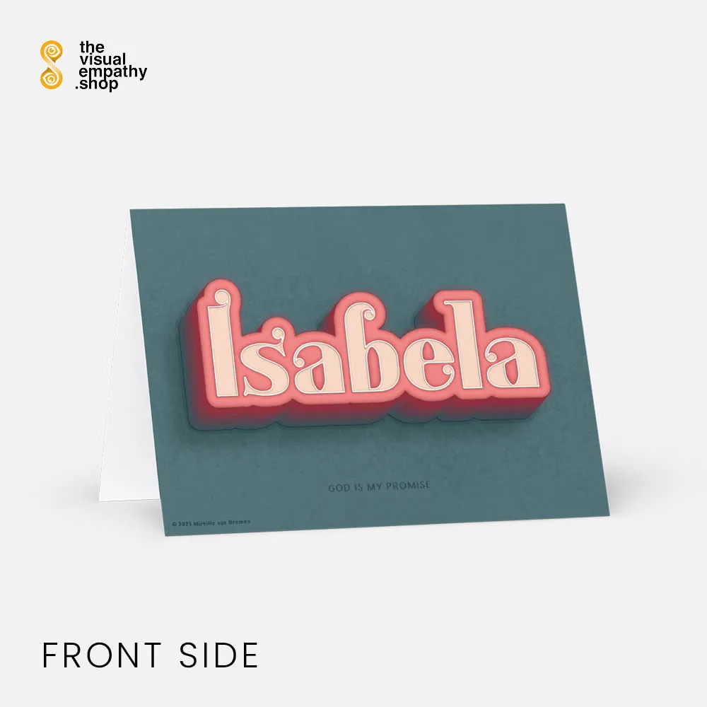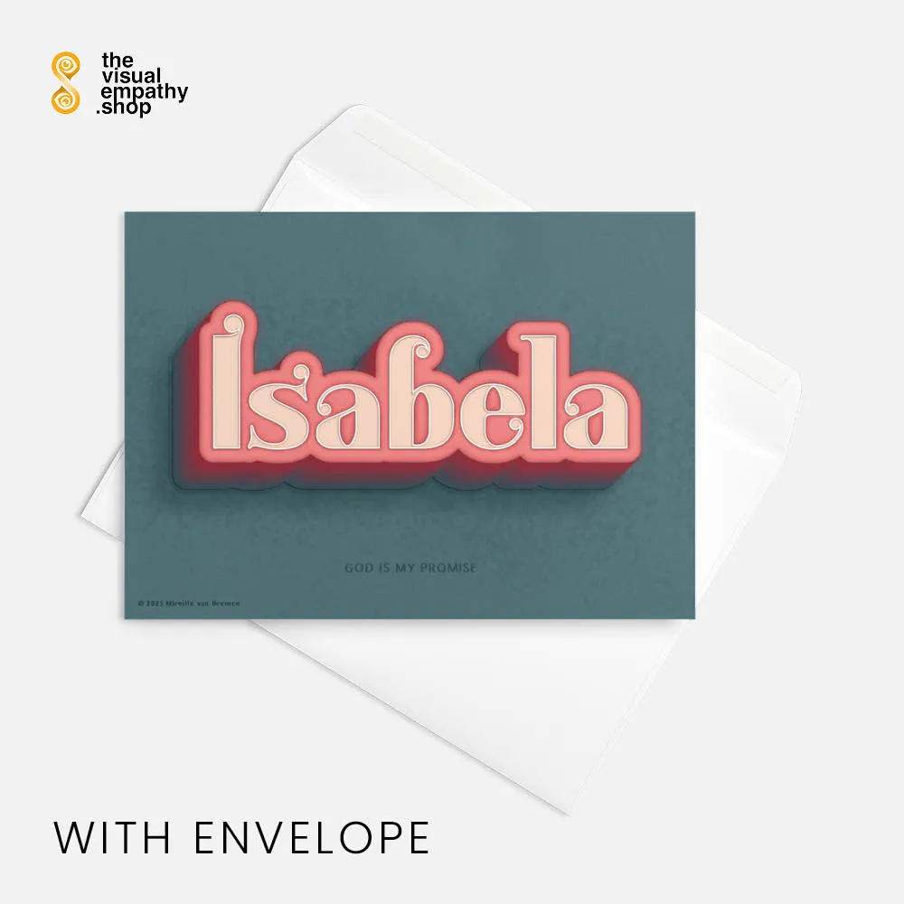 Surprise Isabela with a hand-lettered, uniquely designed card illustrating the beautiful meaning behind her name. Add your own heartfelt message inside to remind her just how much she means to you.
