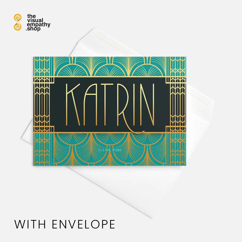 Surprise Katrin with a hand-lettered, uniquely designed card illustrating the beautiful meaning behind her name. Add your own heartfelt message inside to remind her just how much she means to you.