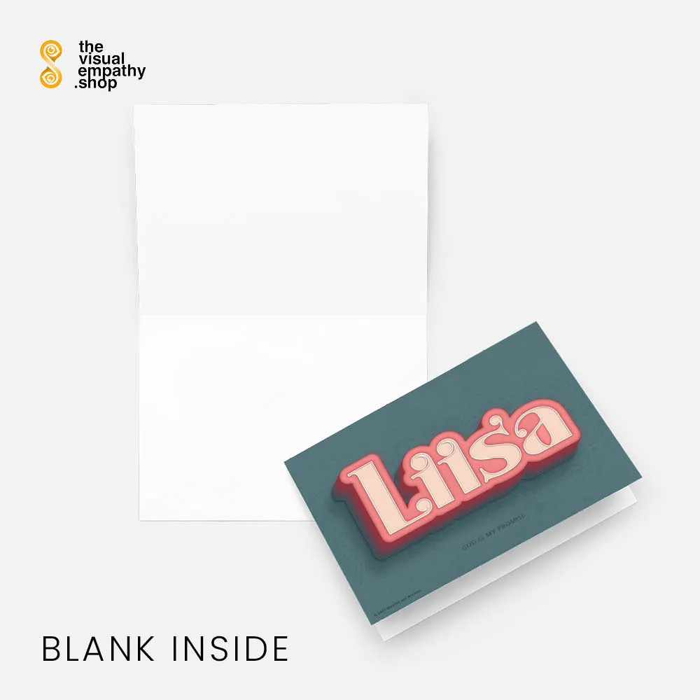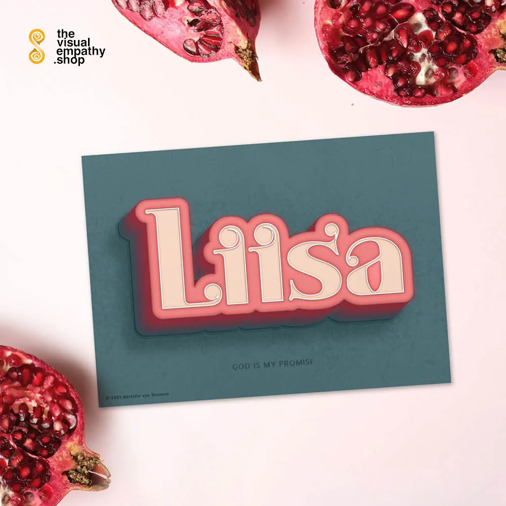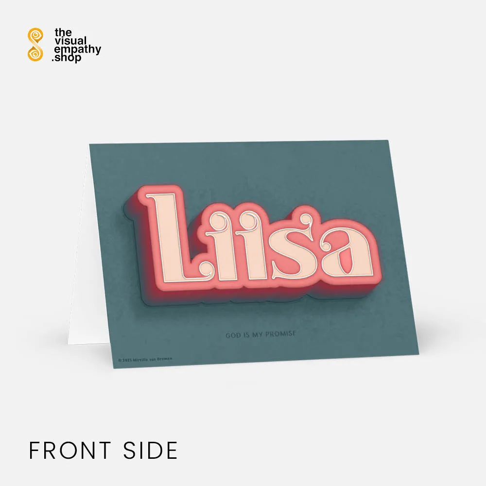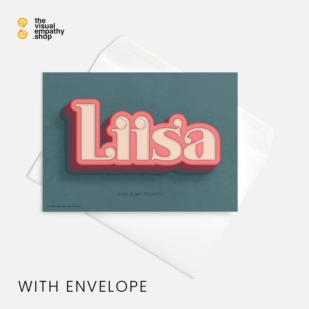Surprise Liisa with a hand-lettered, uniquely designed card illustrating the beautiful meaning behind her name. Add your own heartfelt message inside to remind her just how much she means to you.