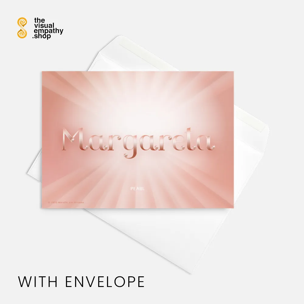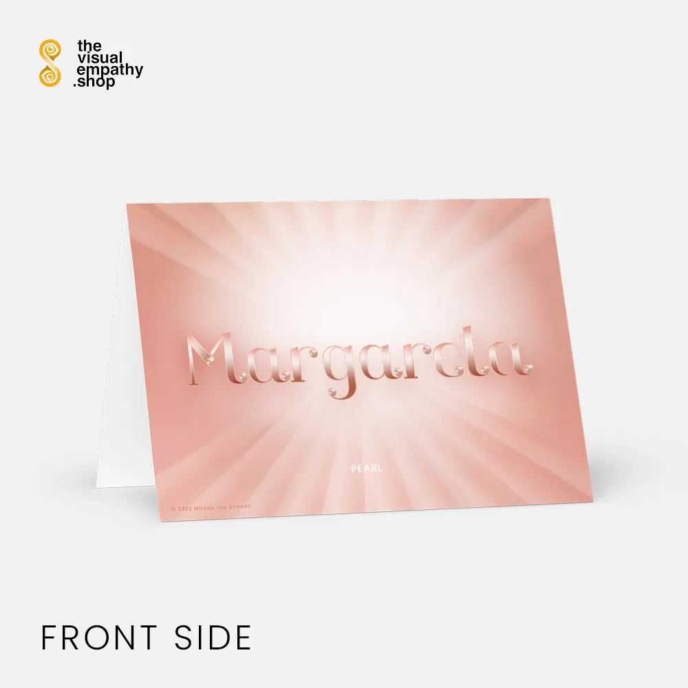 Surprise Margareta with a hand-lettered, uniquely designed card illustrating the beautiful meaning behind her name. Add your own heartfelt message inside to remind her just how much she means to you.